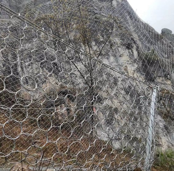 被動防護網是一種廣泛應用于山地邊坡防護工程中的柔性安全防護系統(tǒng),其結構主要由四個部分組成:鋼絲繩網或環(huán)形網(在需要攔截小塊落石時,通常還會附加一層鐵絲格柵)、固定系統(tǒng)(包括錨桿、攔錨繩、基座以及支撐繩)、減壓環(huán)和鋼柱。這些構件通過科學合理的布局與連接方式組合在一起,其中鋼柱與鋼絲繩網相互連接,形成一個穩(wěn)定而富有彈性的整體結構,從而對所需防護的區(qū)域實現全面的面狀覆蓋防護,有效阻止崩塌的巖石或土體從高處墜落,起到保護下方道路、建筑及人員安全的作用。